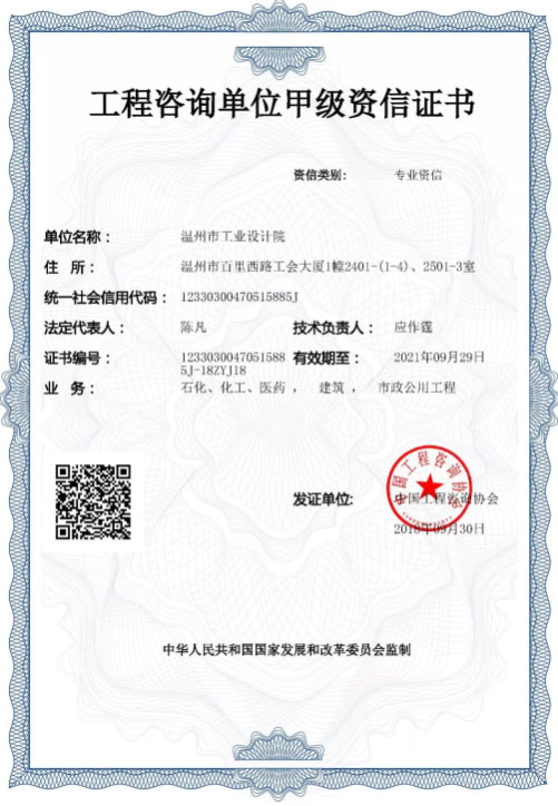 溫州市工業(yè)設(shè)計(jì)院獲首批工程咨詢單位甲級資信資格
